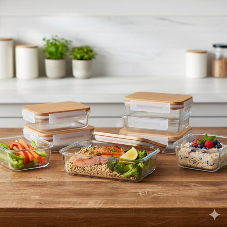 Must-Have: Ich nutze diese Glas-Vorratsbehälter, um meine Mahlzeiten frisch zu halten. Sieht im Kühlschrank zudem toll aus und kann zum Wärmen direkt in die Microwelle.